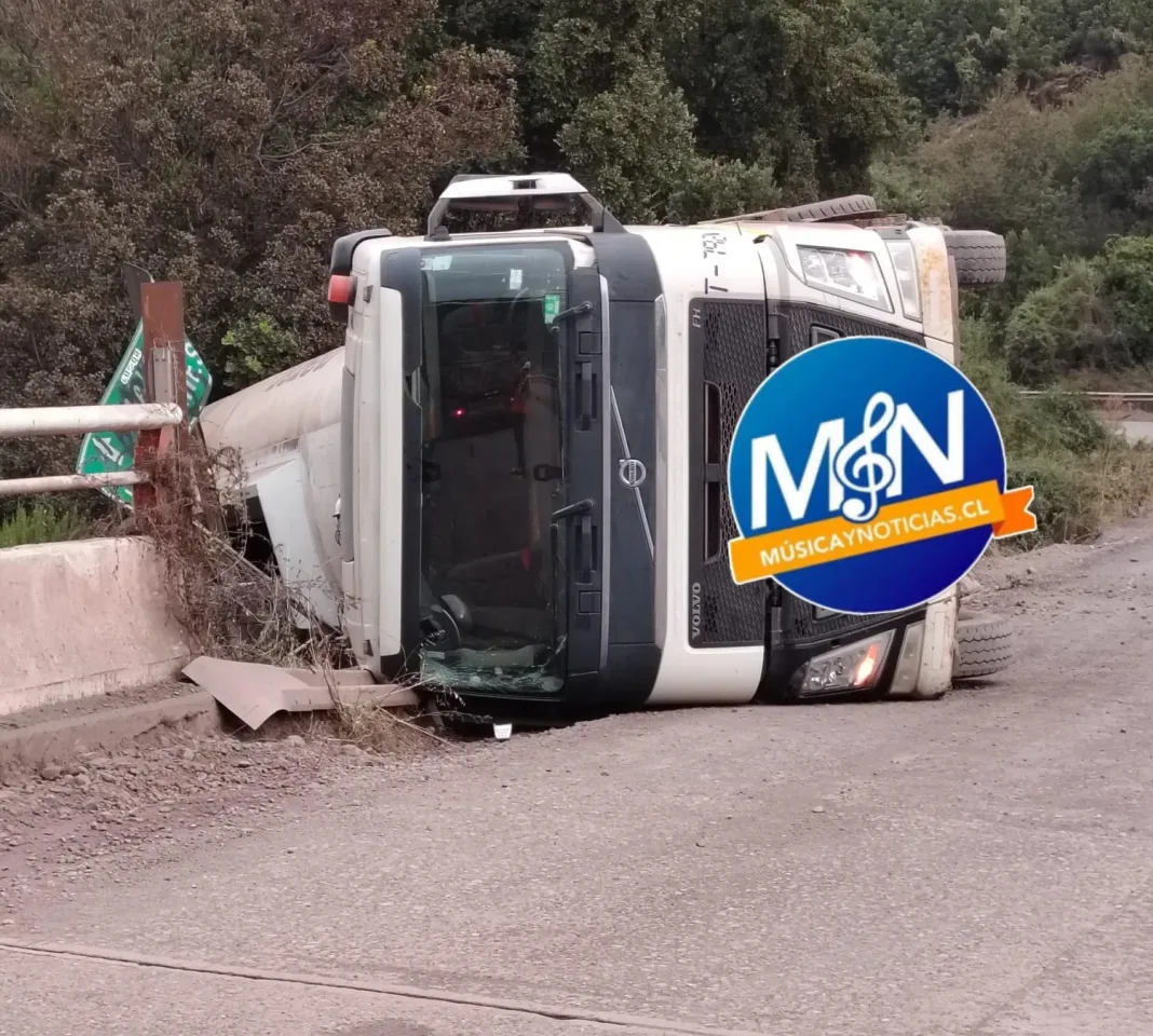 LOS QUEÑES, REGIÓN DEL MAULE – Un camión aljibe perteneciente a la empresa Transportes Nazar, patente LLWZ82, volcó la mañana de este jueves 5 de febrero en el puente Hernán Briones, en la localidad de Los Queñes, comuna de Romeral, Región del Maule.